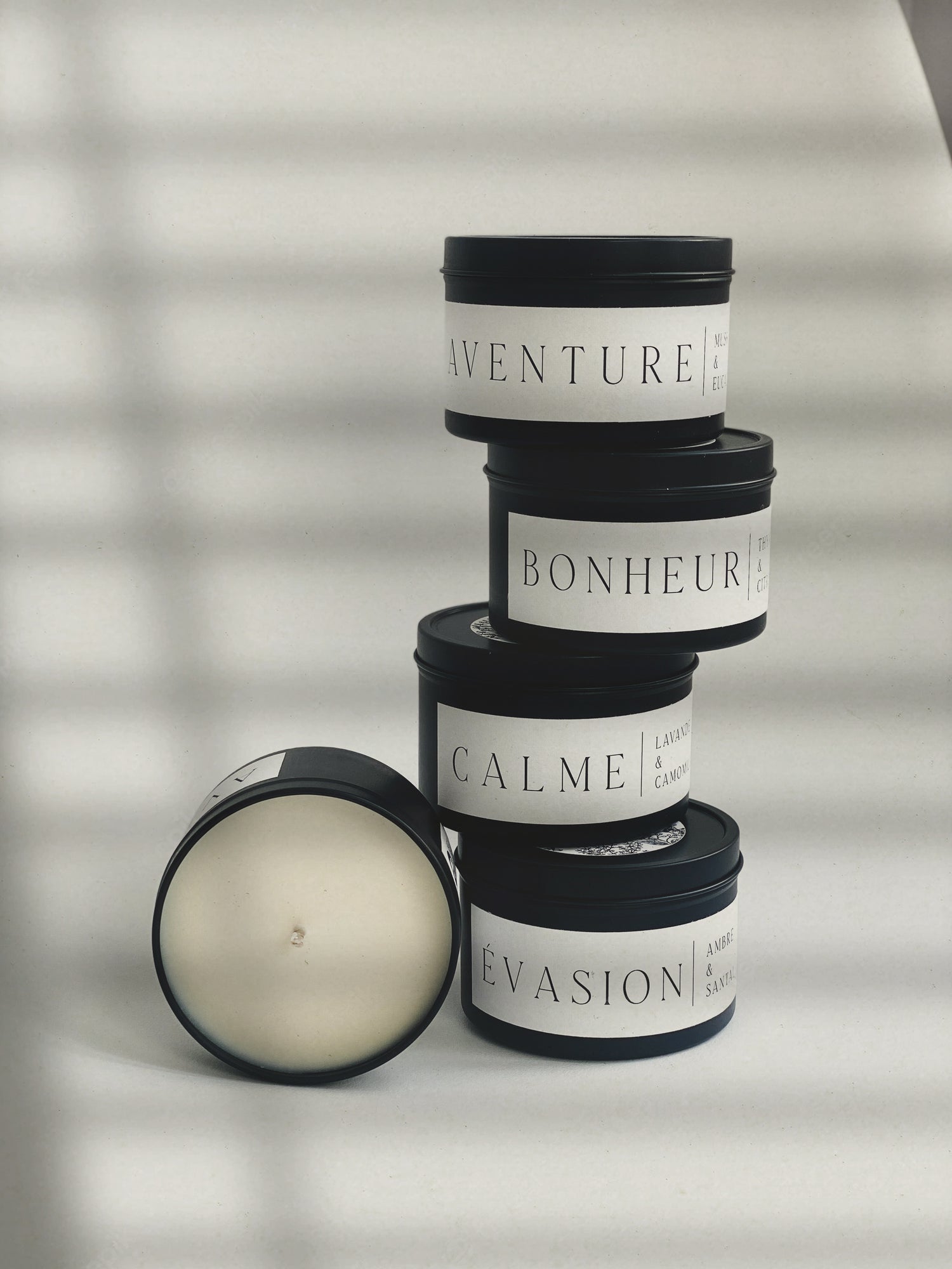 Hand poured into matte black glass containers and packaged in cylindrical boxes,...